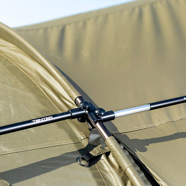 テント左右、上下方向への張力を保持する3本のメインアーチポール、テントの入り口前後方向の張力を保持する4本のテンションポール、それらをポールホルダーで構成する「POLE to POLE方式」による構造体であるオルタスは、設営がし易く堅牢なテントです。また、張り具合を調整するのにガイロープを必要としません。温度や湿度に応じてテンションポールのアジャスターを使い、張り具合が調整可能なのはテンターオリジナル構造です。